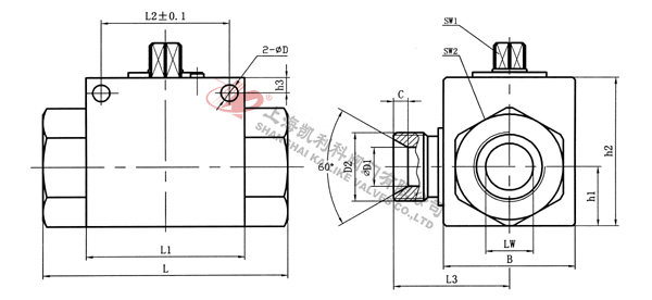 4、VH3V二位三通高壓球閥主要根據剖面、長度、高度、外形等作出說明。