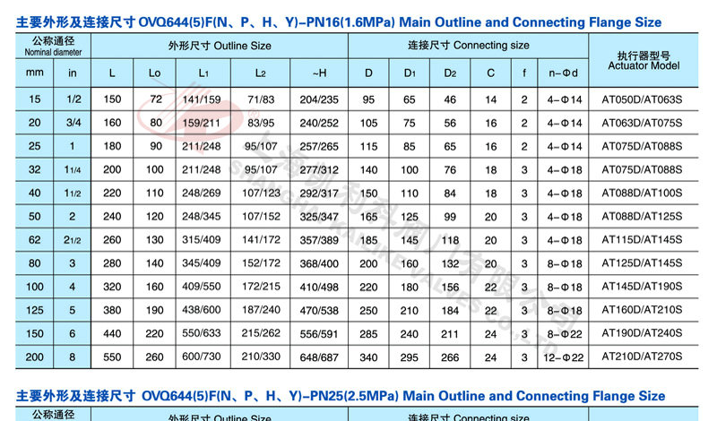 公稱通徑 DN(mm) 15 20 25 32 40 50 65 80 100 125 150 200