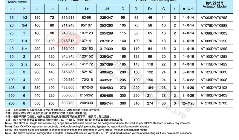 采用新型系列氣動執行器,有雙作用式和單作用式(彈簧復位),齒輪齒條傳動,安全可靠;大口徑閥門采用系列AW型氣動執行器拔叉式傳動,結構合理,輸出扭矩大,有雙作用式和單作用式。